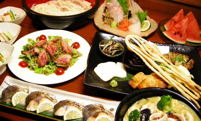 香川の郷土料理をご堪能いただける自慢の"前菜"に始まり、新鮮なお刺身やオリーブ牛ステーキまで。